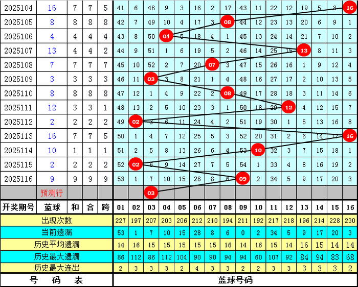 单注6+1推选:01、10、12、14、16、20+03